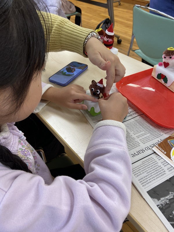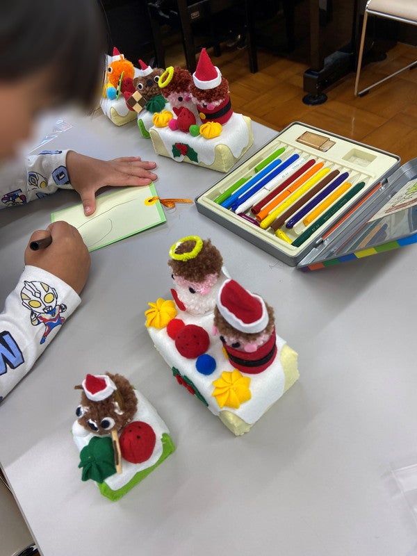 今年は自分が持ち帰る作品として「天使とサンタのクリスマスケーキ」を制作し、どなたかにプレゼントする作品として「ふわふわアニマルのショートケーキ」を制作しました。