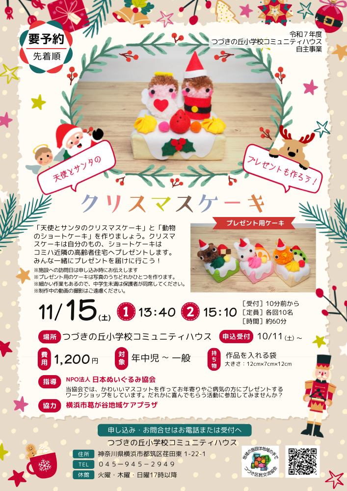 [11/15]天使とサンタのクリスマスケーキ(つづきの丘小学校コミュニティハウス)